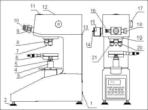 采用LCD顯示屏,可切換硬度標尺維氏(HV)與努氏(HK),操作簡便,高清光學系統,光源亮度可以20級調節,多種硬度制式換算功能,用測微目鏡測得對角線長度D1和D2值,按鍵輸入后可在LCD上顯示硬度值。一體化鑄鋁機身,不變形不移位,砝碼加載結構,性能穩定,測量精度高,重復性好。