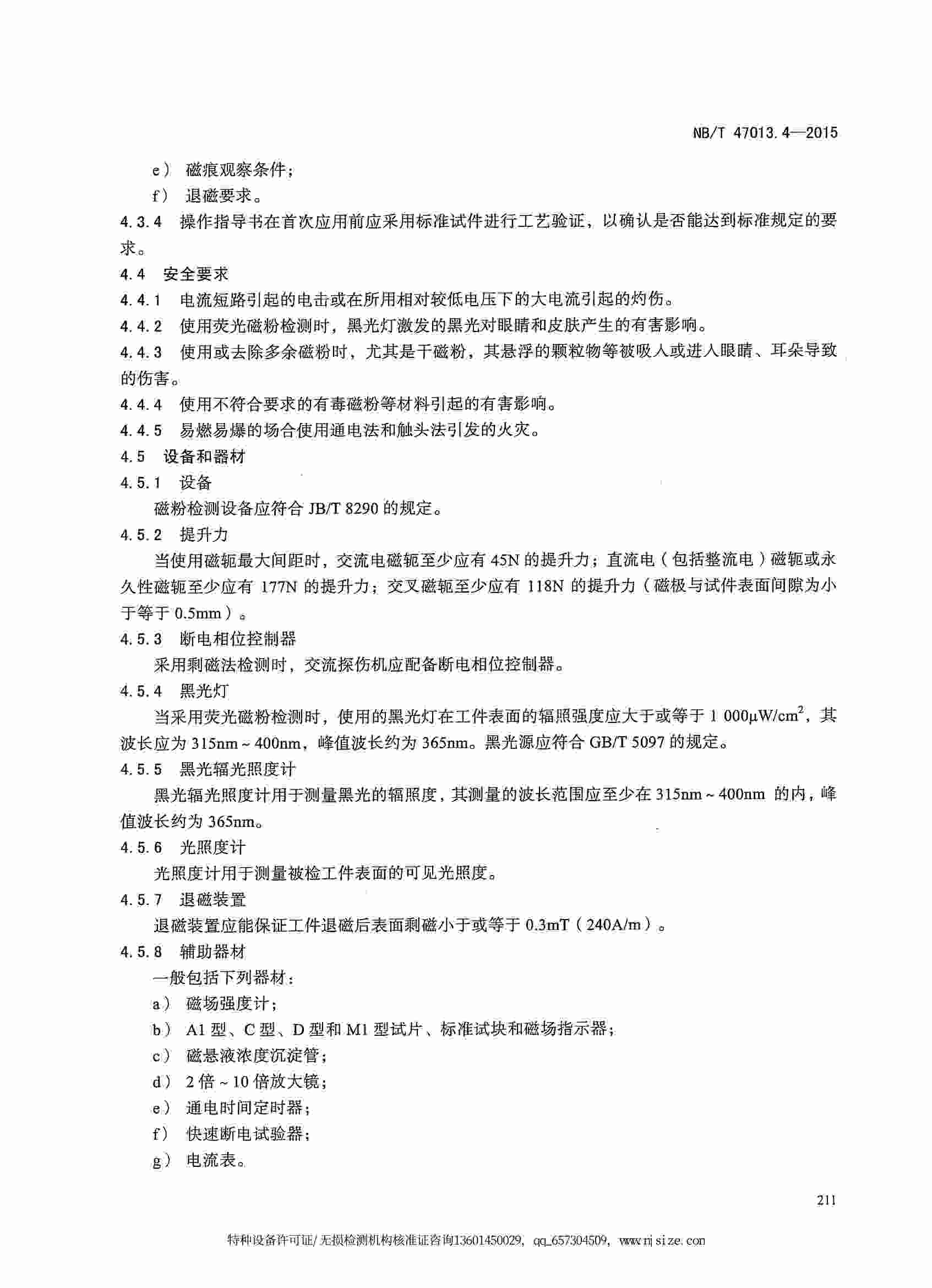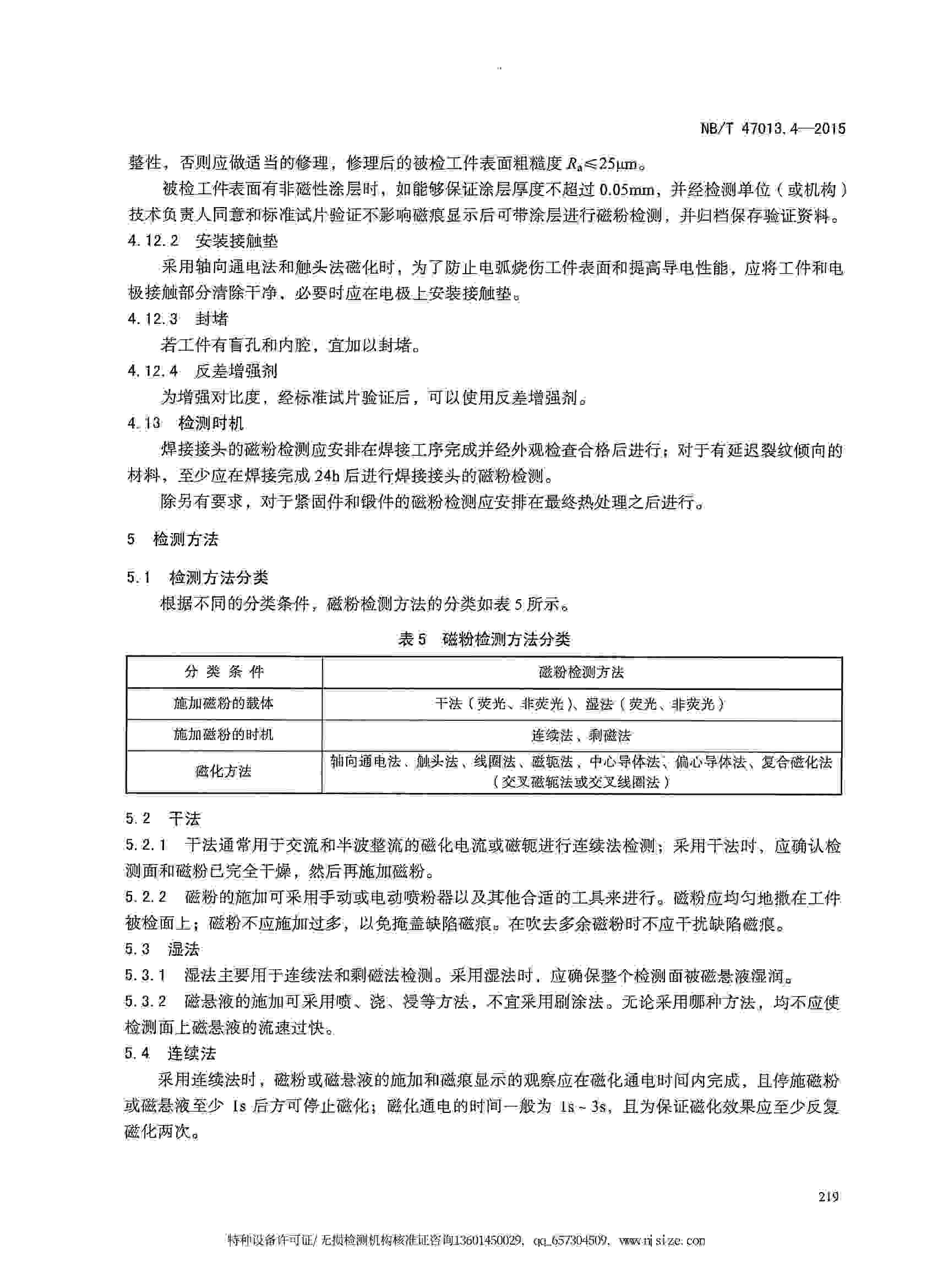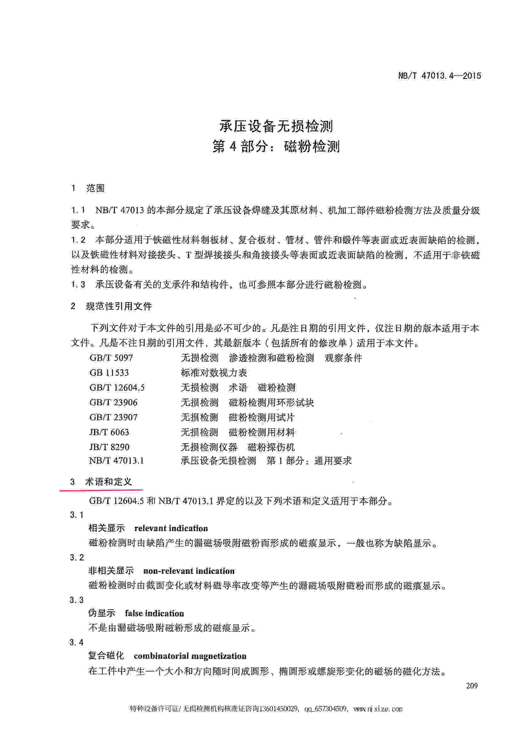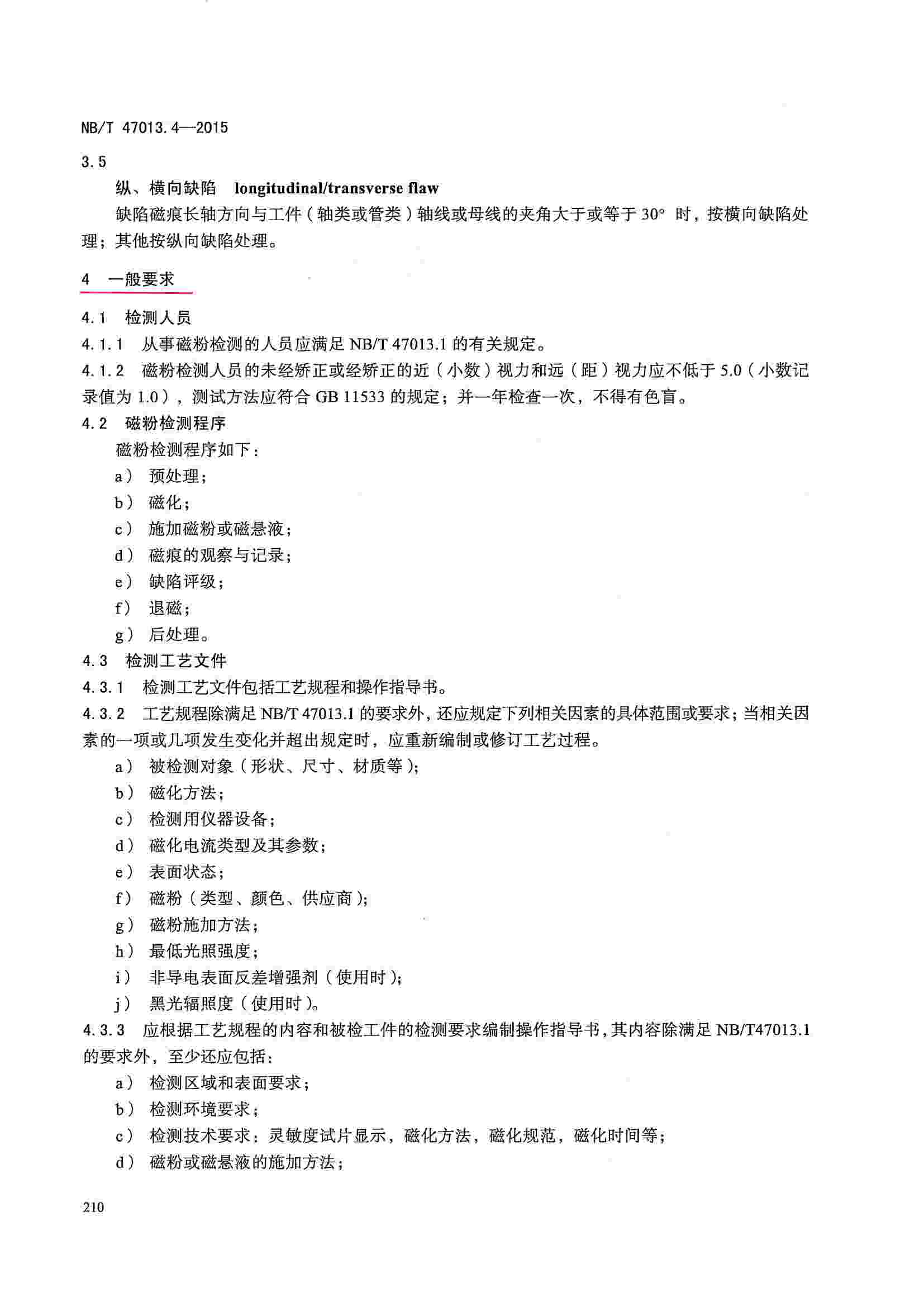 NB/T47013.4-2015 承壓設備無損檢測 第4部分:磁粉檢測