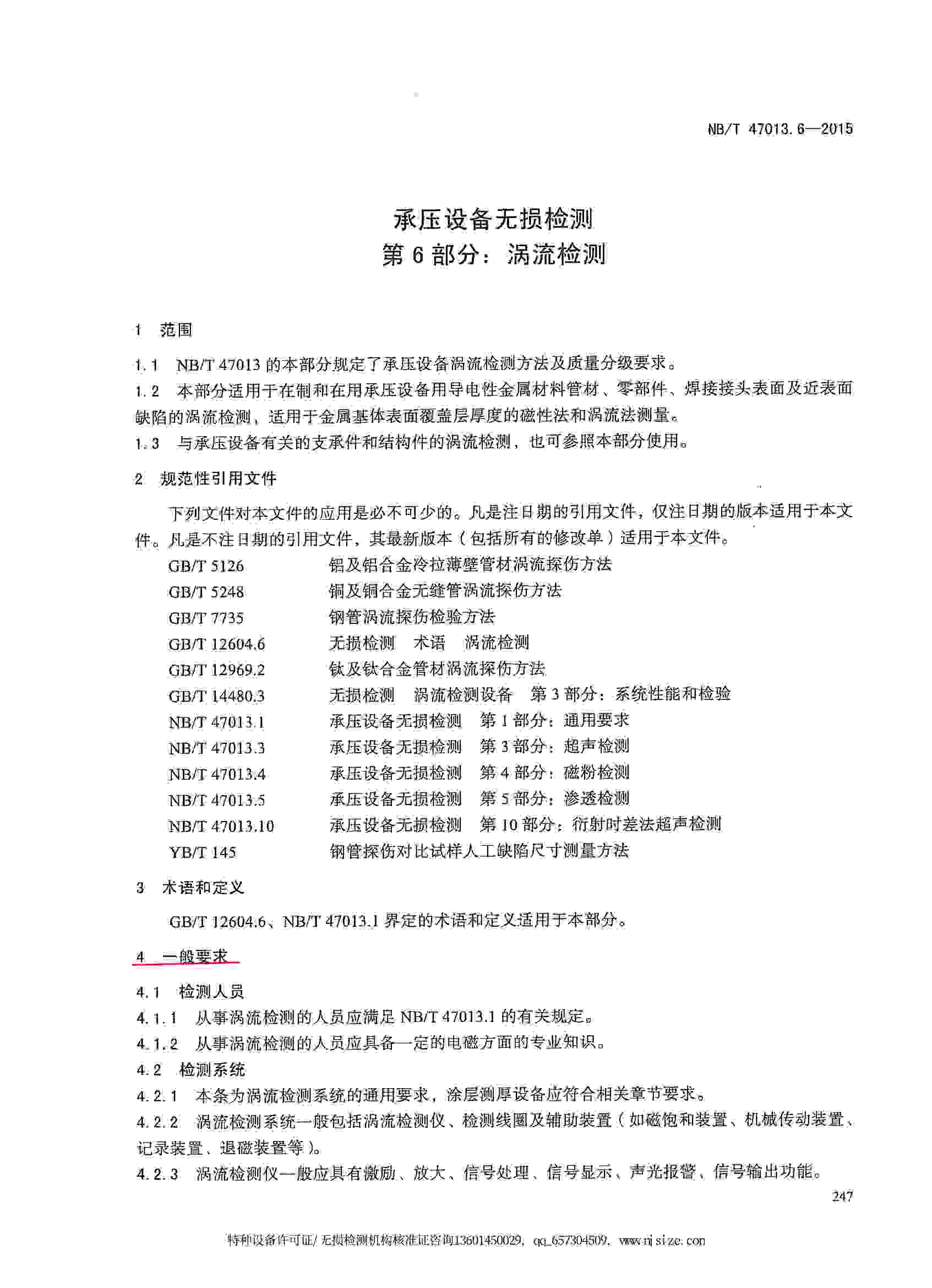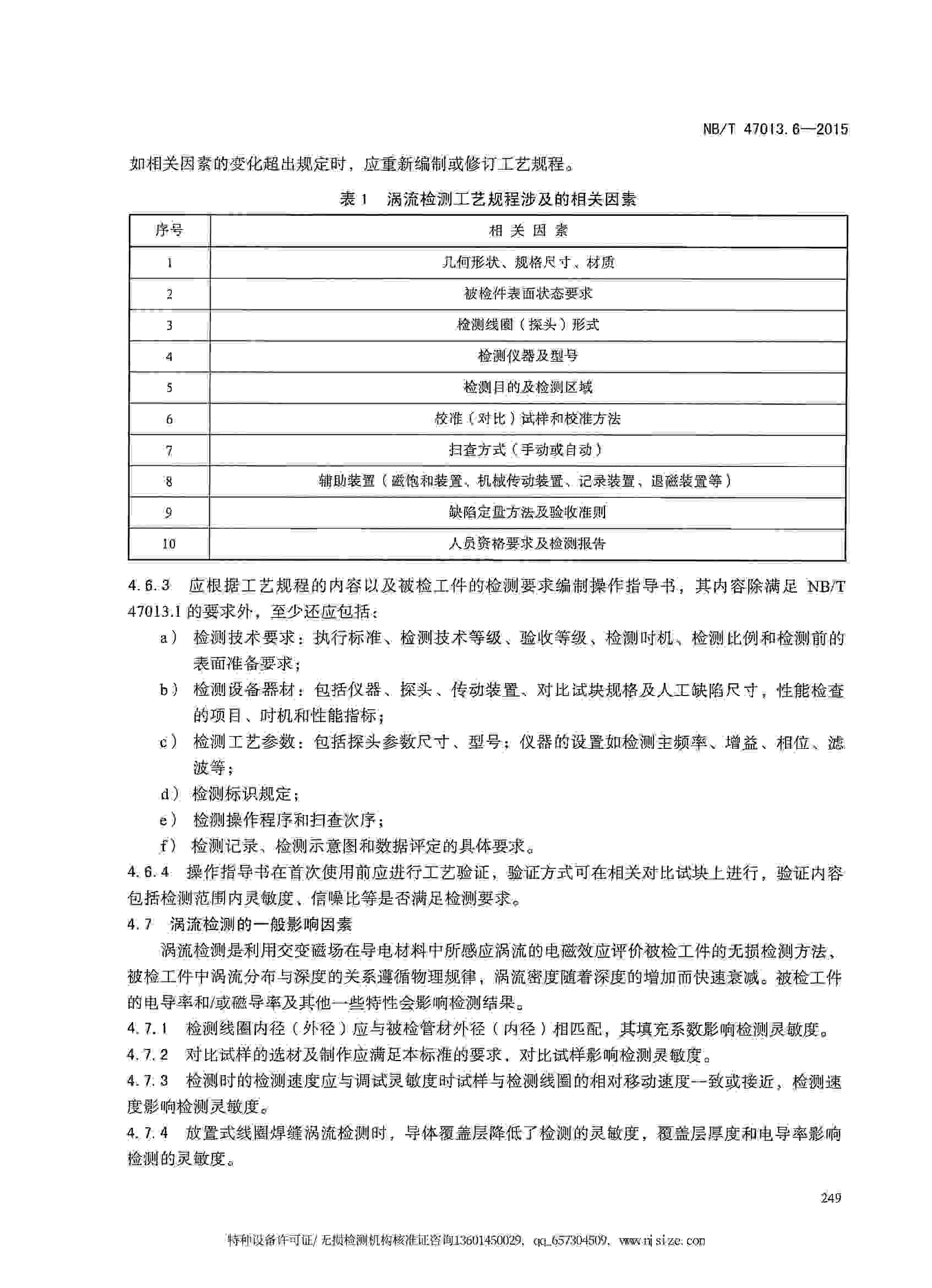 NB/T47013.6-2015 承壓設備無損檢測 第6部分:渦流檢測