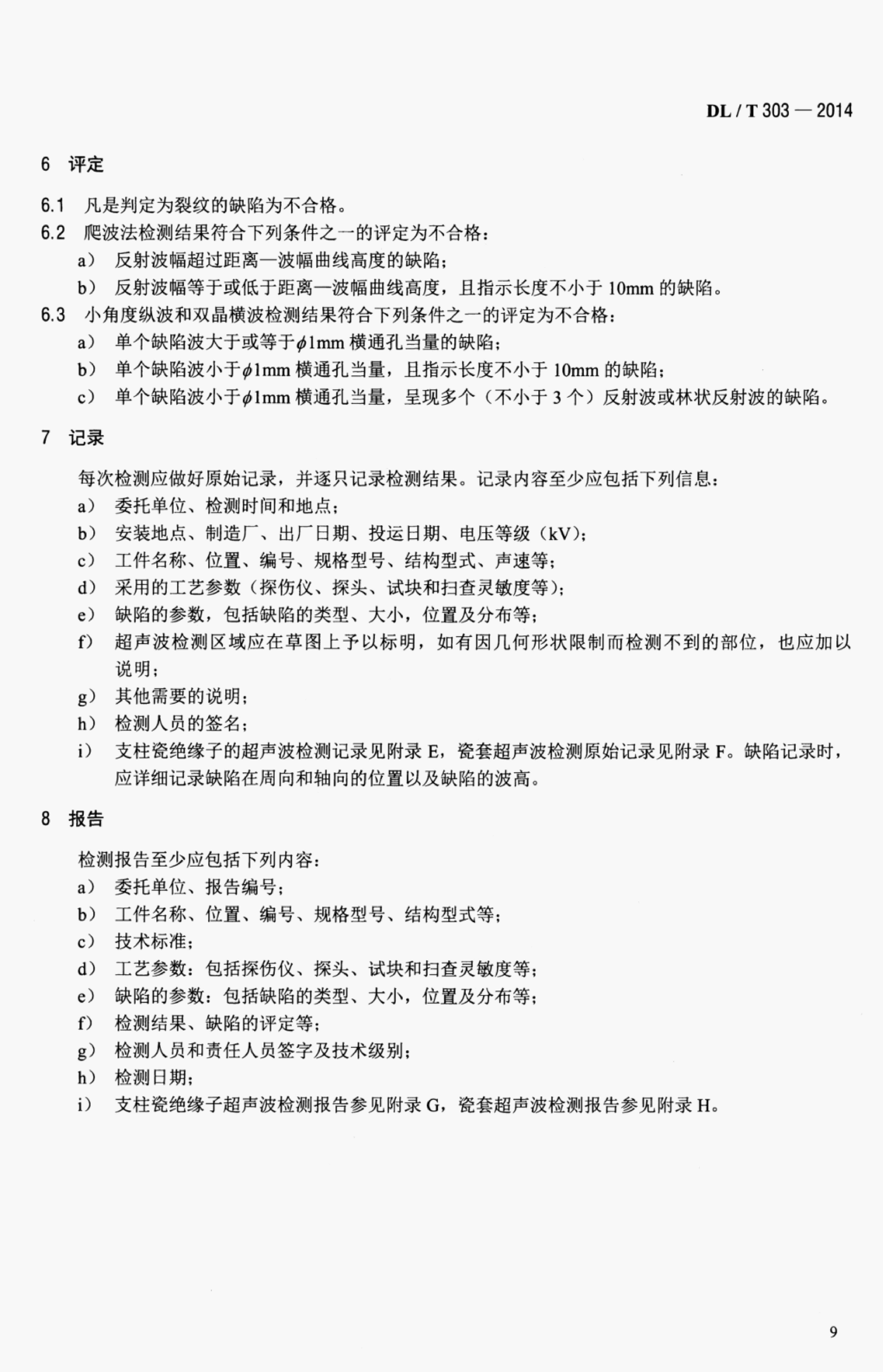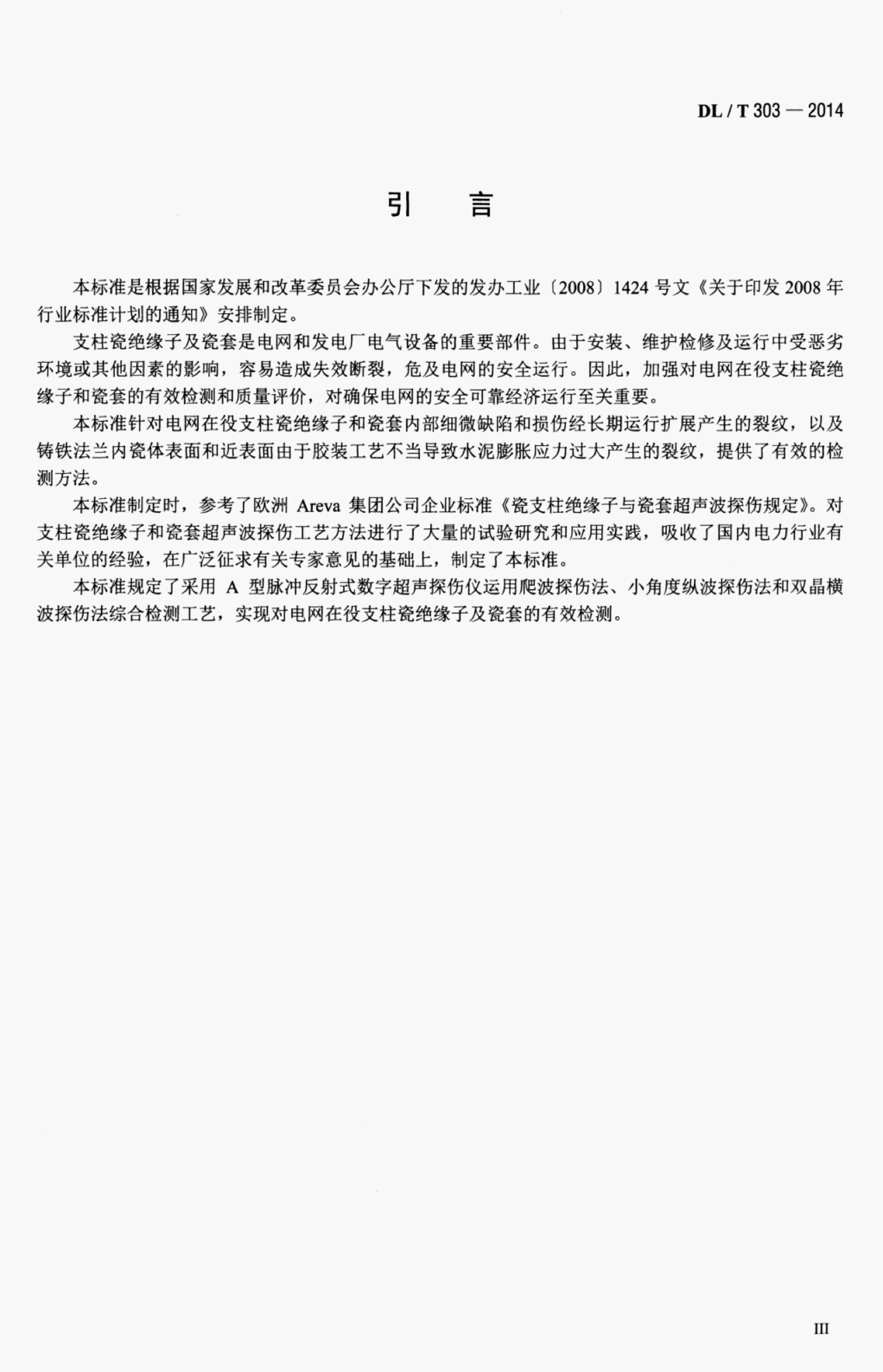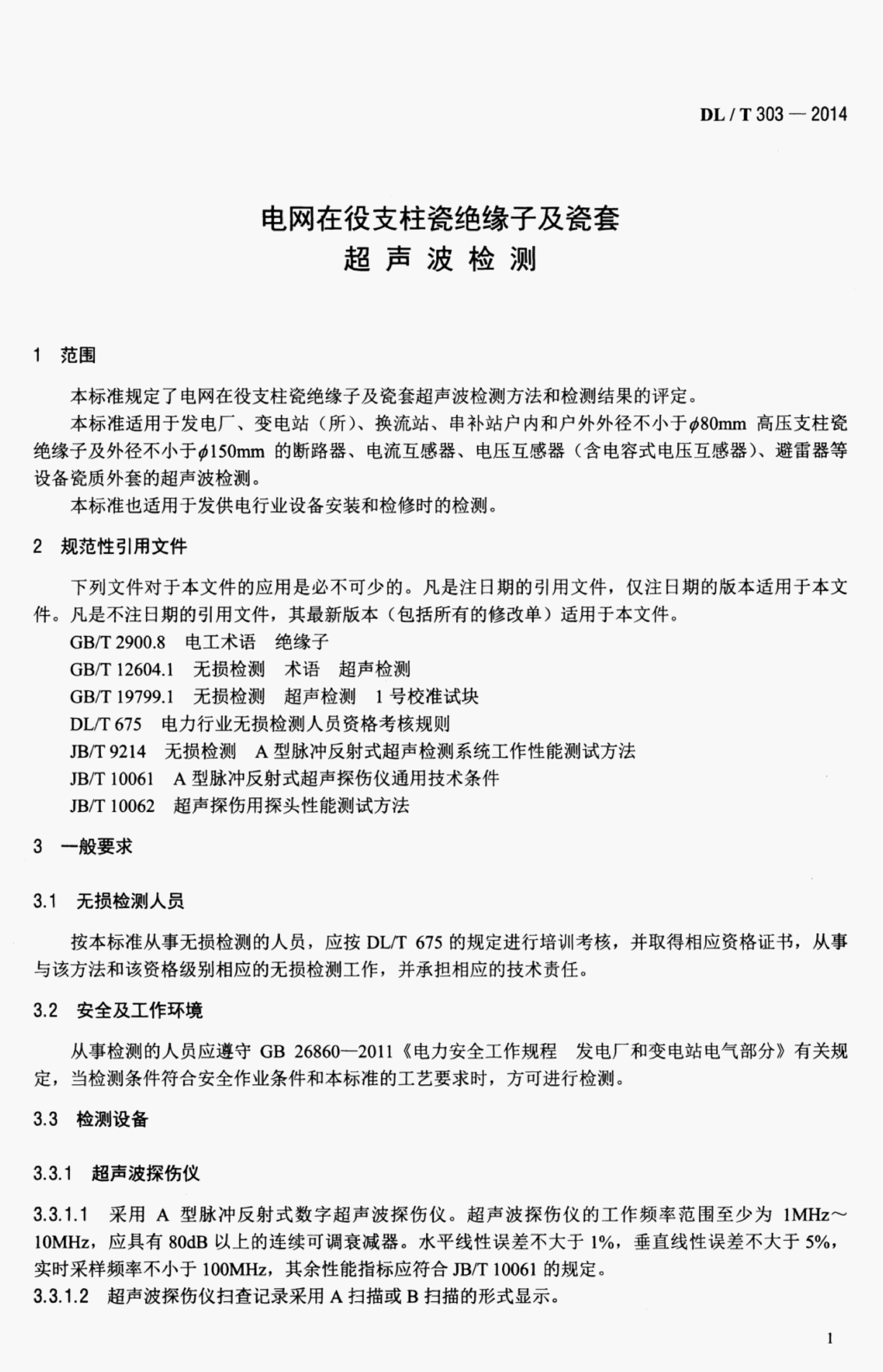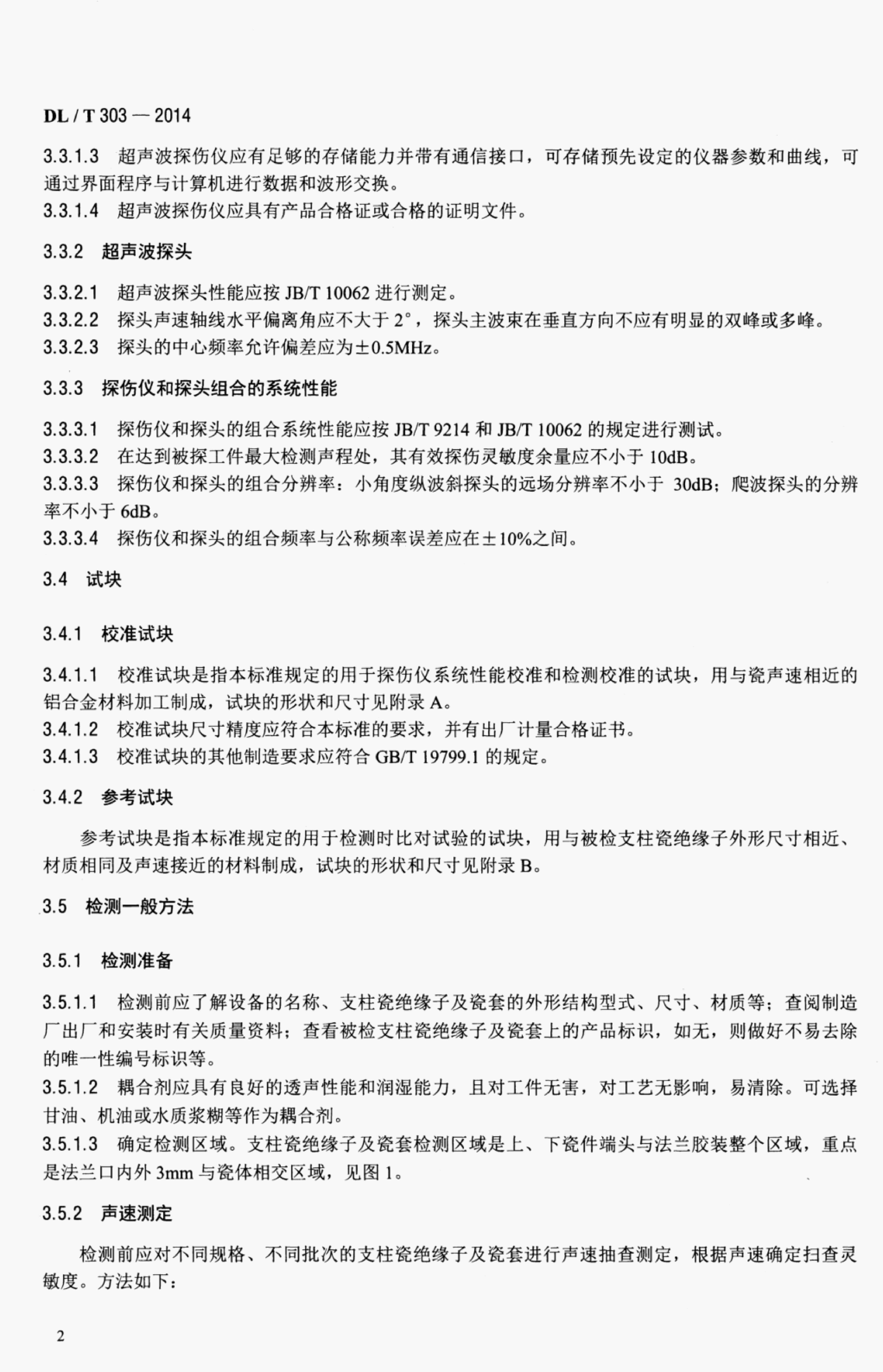 DL/T 303-2014 電網在役支柱 瓷絕緣子及瓷套 超聲波檢測
